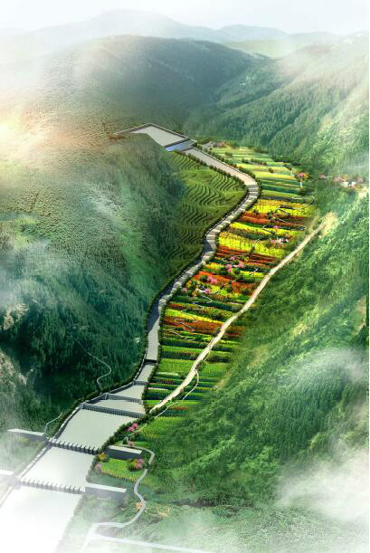 文家沟泥石流灾害应急治理工程景观效果图